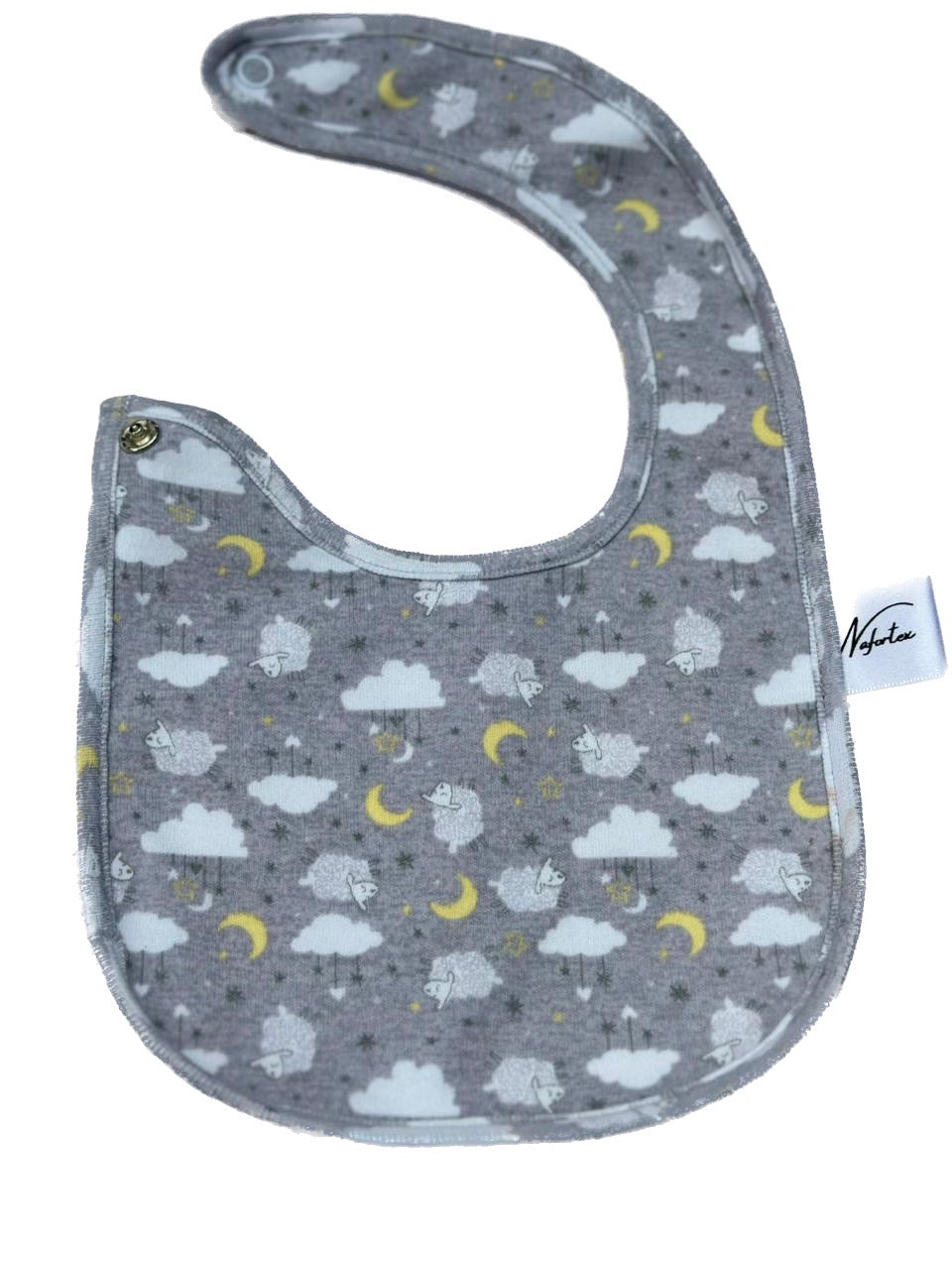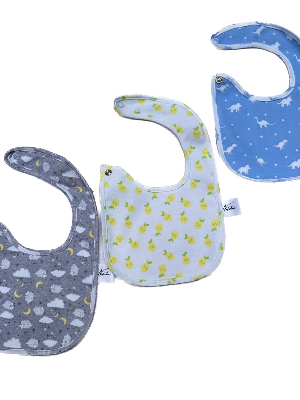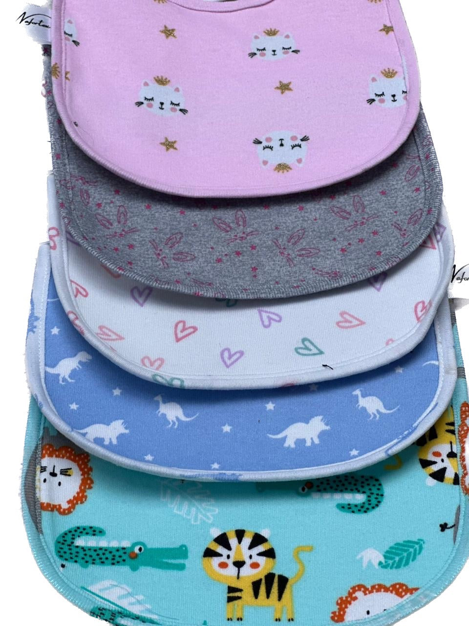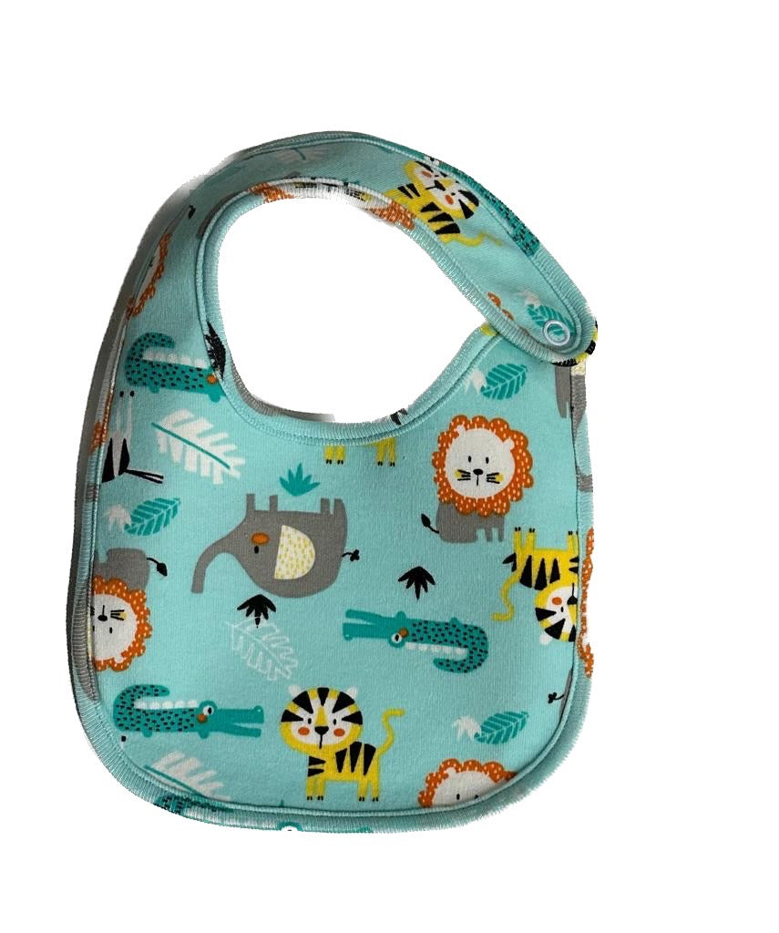 Nuestros baberos con estampados tiernos y animados, están hechos de algodón para que al contacto con la cara del bebé, se sienta súper suave y, en la parte trasera, está reforzado con tela impermeable para que no se mojen.